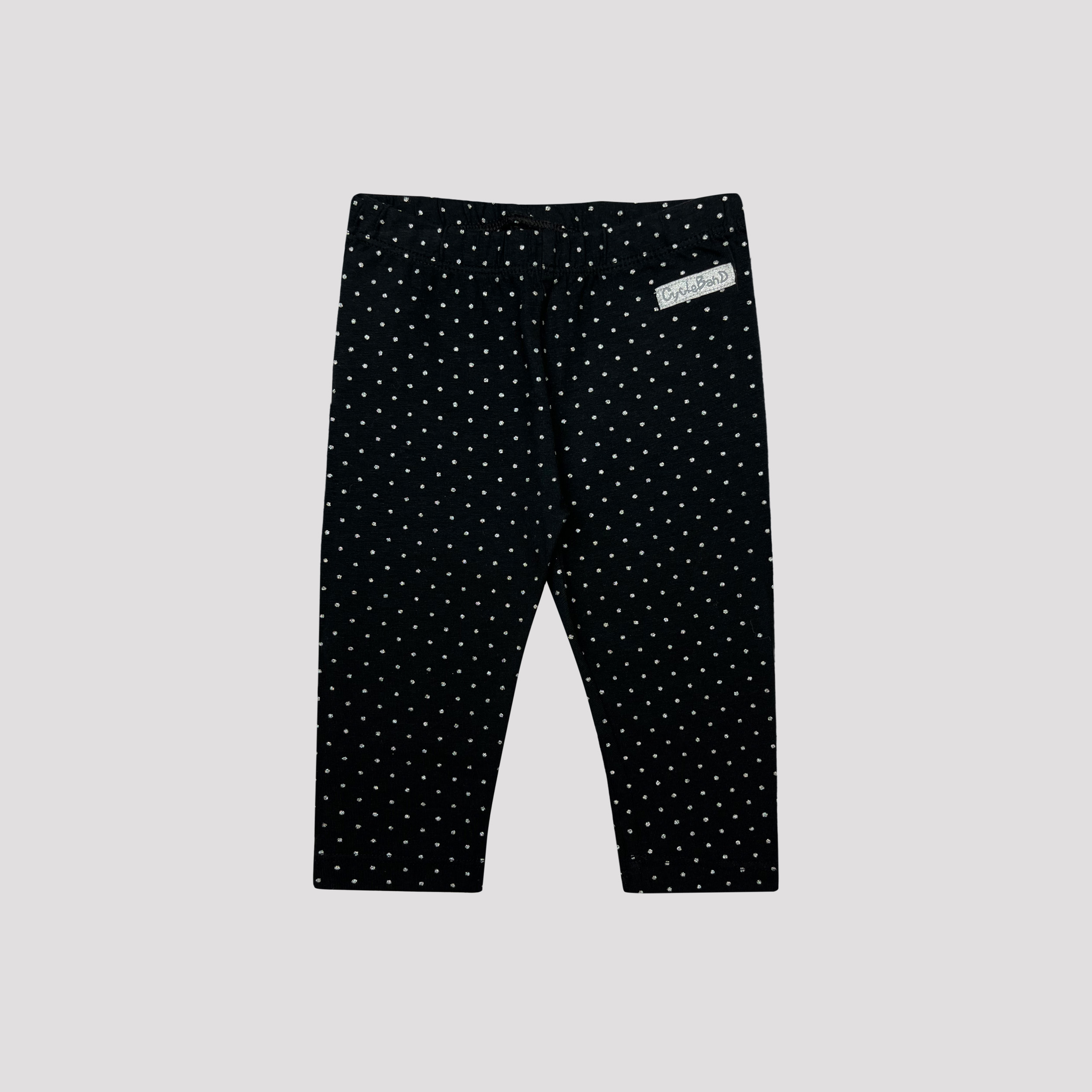Leggings in cotone lycra stampato a pois glitter silver, elastico in vita