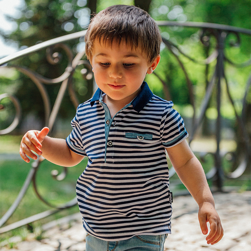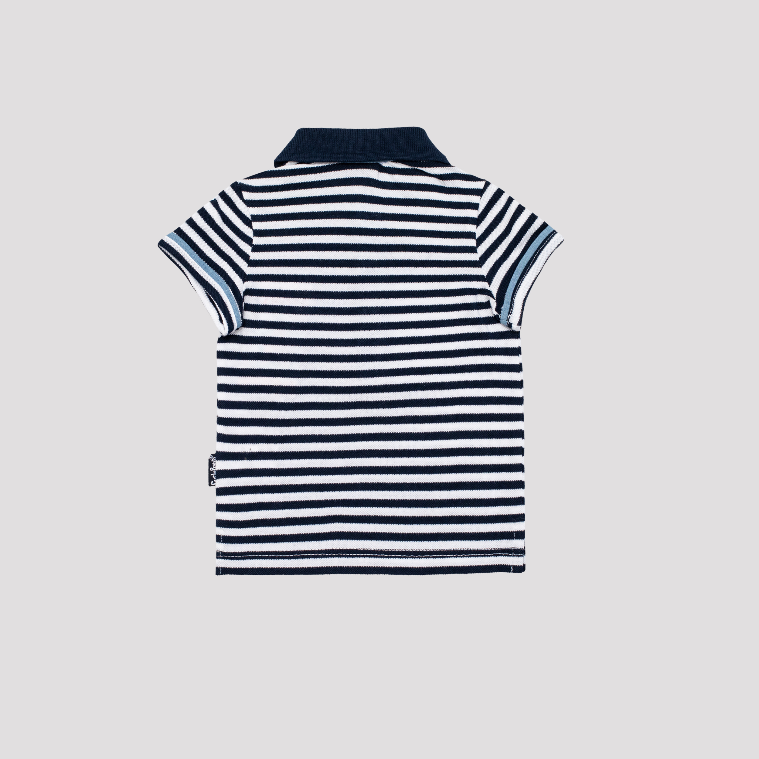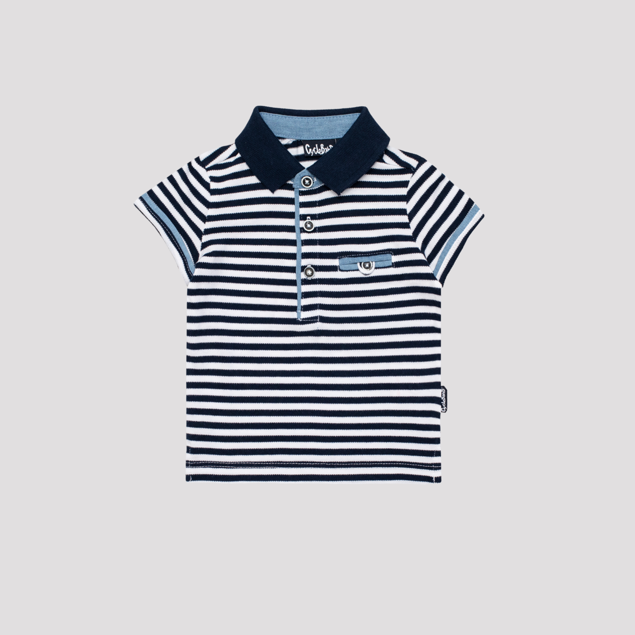 Polo in piquet rigato tinto in filo 100% cotone manica corta, coletto in contrasto e dettagli e filetti del taschino in tessuto oxford.