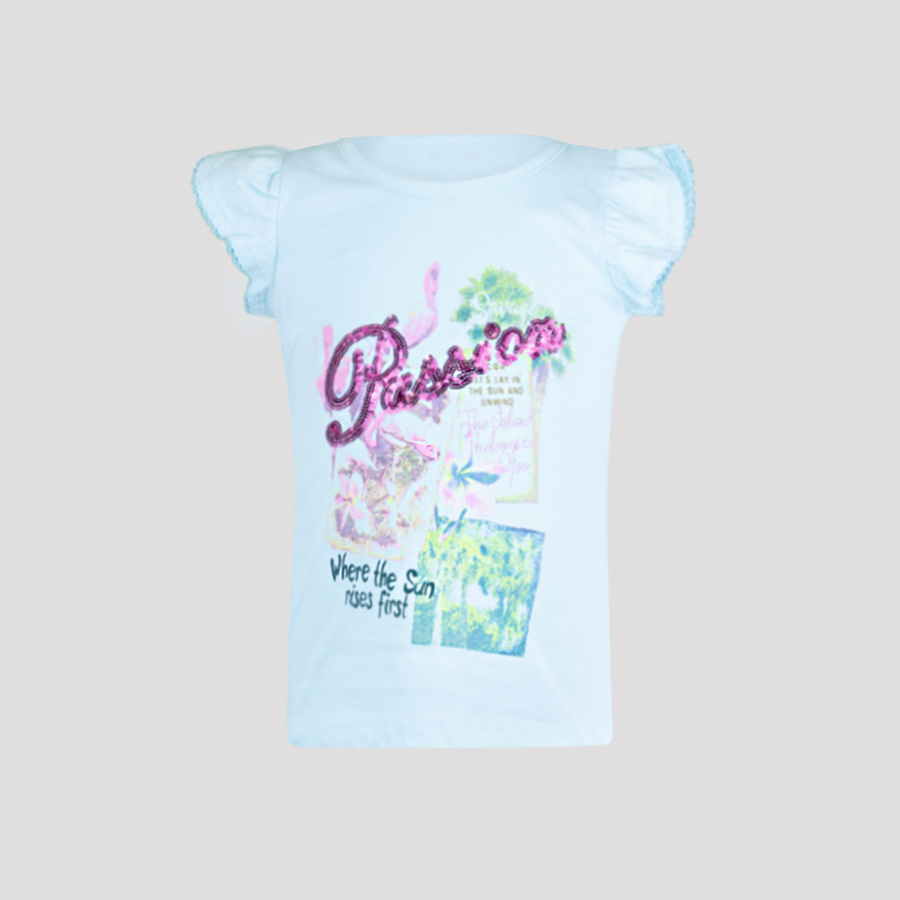 T-shirt manica corta in jersey, maxi stampa e applicazione in paillettes davanti